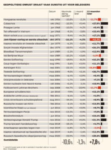 De Brexit, een handelsoorlog tussen Amerika en China, de inval van de Taliban in Afghanistan, een wereldwijd chiptekort en fors stijgende energieprijzen. Allemaal events die hadden kunnen leiden tot een forse correctie. De werkelijkheid was anders. Voorspellen wat er mogelijk gaat gebeuren is en blijft zinloos. En dat is niet onze mening maar een uitspraak gebaseerd op heel veel wetenschappelijke data. Wij voorspellen niet. Hebben geen visie op de ontwikkeling van financiële markten. Ons beleggingsbeleid is gebaseerd op feiten. En heel veel spreiding. En het goede nieuws: er is heel veel data aanwezig over de invloed van politieke onrust op de beurzen.